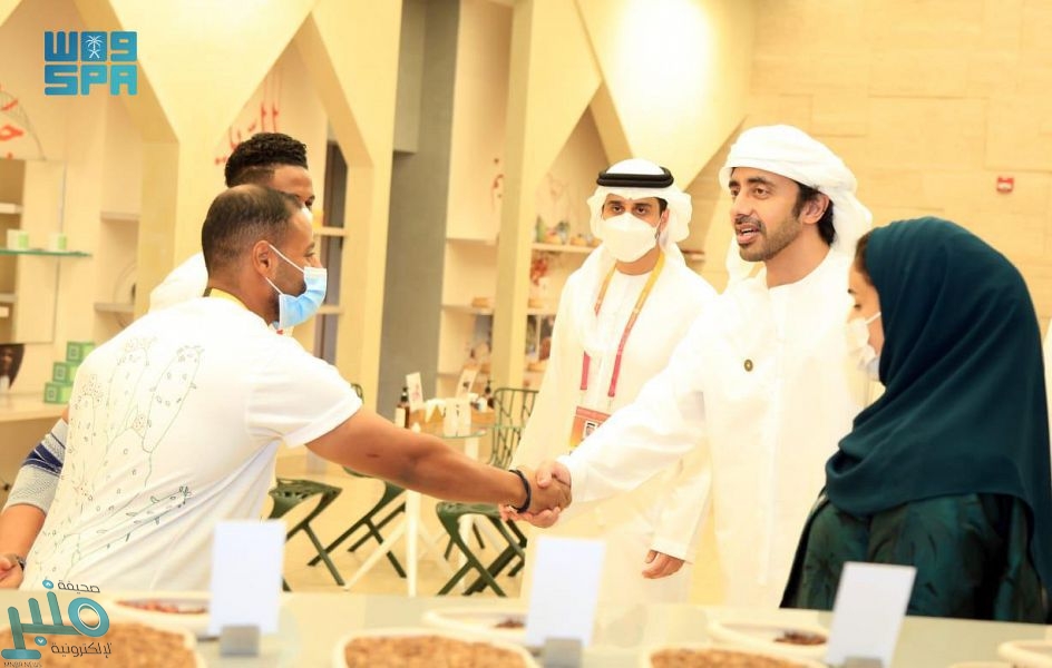 وتوقف وزير الخارجية والتعاون الدولي الإماراتي، عند مركز “رؤية”، الذي يضم كرة عملاقة بقُطر يبلغ 30 متراً متعددة الأوجه بأرضية تفاعلية رقمية، صمّمها مجموعة من الفنانين والمبدعين السعوديين، لتُبرز جوهر الثقافة السعودية، مبديا إعجابه بالكوادر الوطنية السعودية، التي تقدّم المملكة بأبهى وأرقى صورها، عادا جناح المملكة في المعرض إظهارا لالتزام المملكة في المضي قدماً لترسيخ مكانتها إقليمياً وعلى الخريطة العالمية، على ضوء رؤية المملكة 2030.