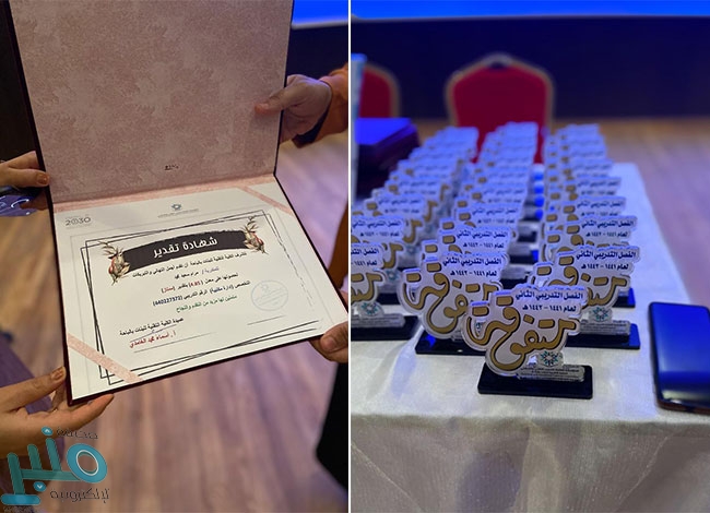 وفي نهاية الحفل تم تقديم الدروع والشهادات للمتدربات المتفوقات .