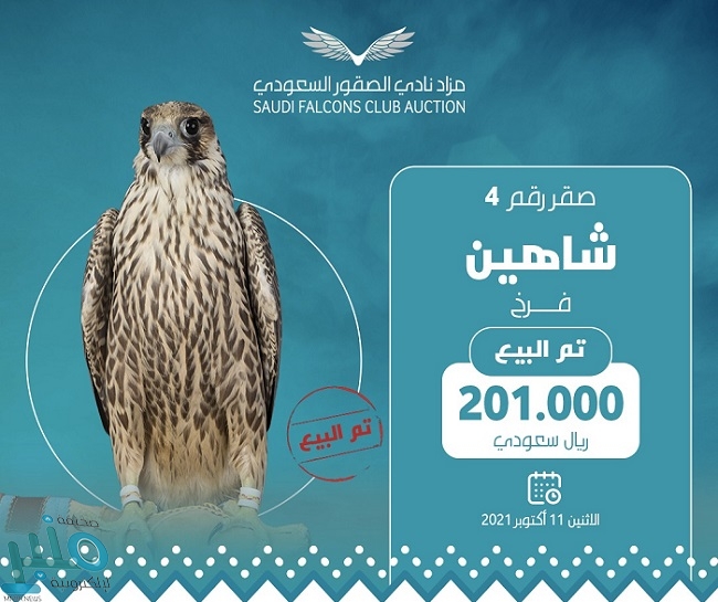 شهدت الليلة الثامنة من ليالي مزاد نادي الصقور السعودي الثاني، الذي ينظمه النادي بمقره بملهم – شمال الرياض – حتى 15 نوفمبر المقبل، بيع أغلى صقر في النسخة الحالية للمزاد بمبلغ 201 ألف ريال، فيما بلغ إجمالي المبيعات اليوم 441 ألف ريال على خمسة صقور.