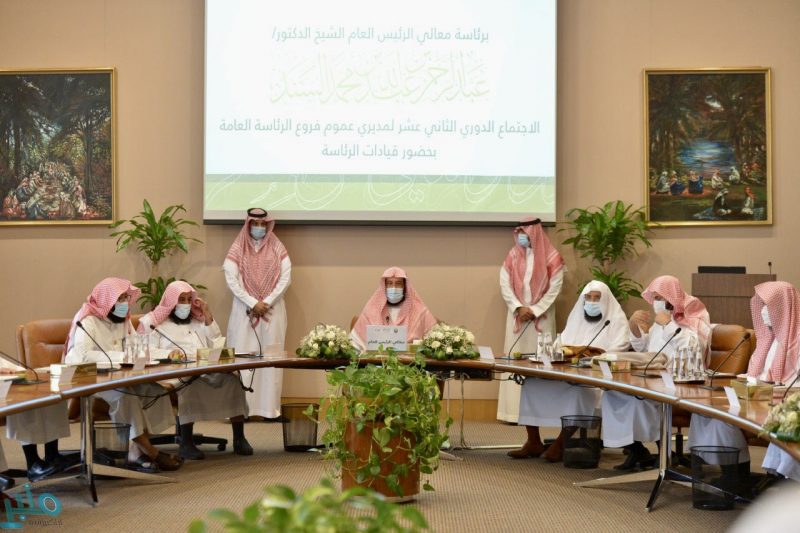 رأس معالي الرئيس العام لهيئة الأمر بالمعروف والنهي عن المنكر الشيخ الدكتور عبدالرحمن بن عبدالله السند، الاجتماع الدوري الثاني عشر لمديري عموم فروع الرئاسة العامة في مختلف مناطق المملكة.