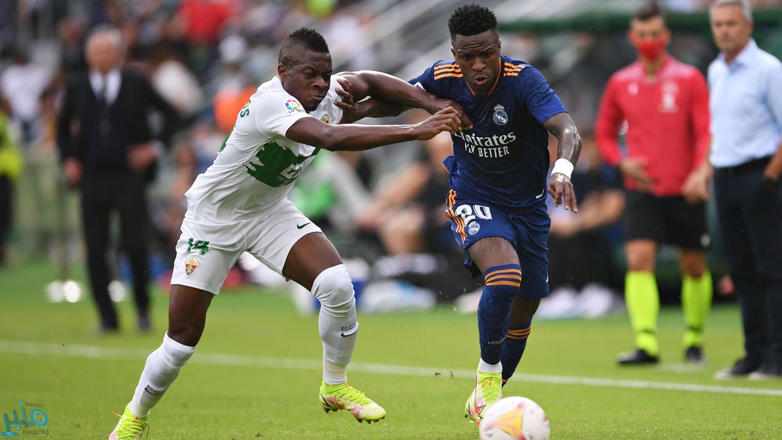وسجل فينيسيوس جونيور الهدف الأول لريال مدريد مع الدقيقة 22، بعدما تسلم الكرة بشكل رائع ليسدد بيسراه في شباك إلتشي.