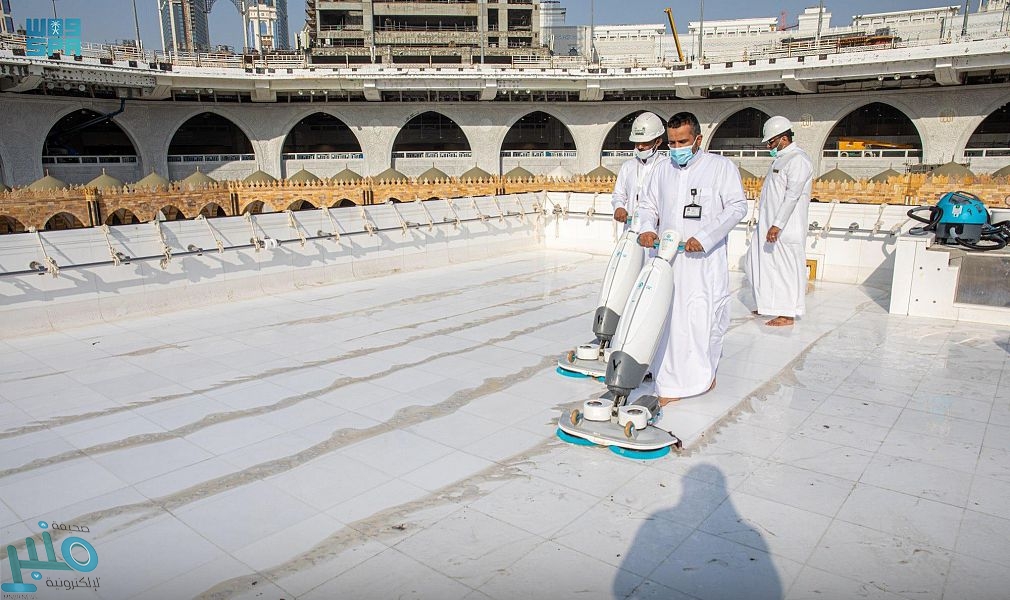 تقوم وكالة الخدمات والشؤون الميدانية وتحقيق الوقاية البيئية بالرئاسة العامة لشؤون المسجد الحرام والمسجد النبوي، بأعمال تطهير سطح الكعبة المشرفة عبر فريق وطني فني متخصص، وهي أعمال دورية تقوم بها الرئاسة وفق جدول زمني وتستخدم فيها أحدث التقنيات للتنظيف.
