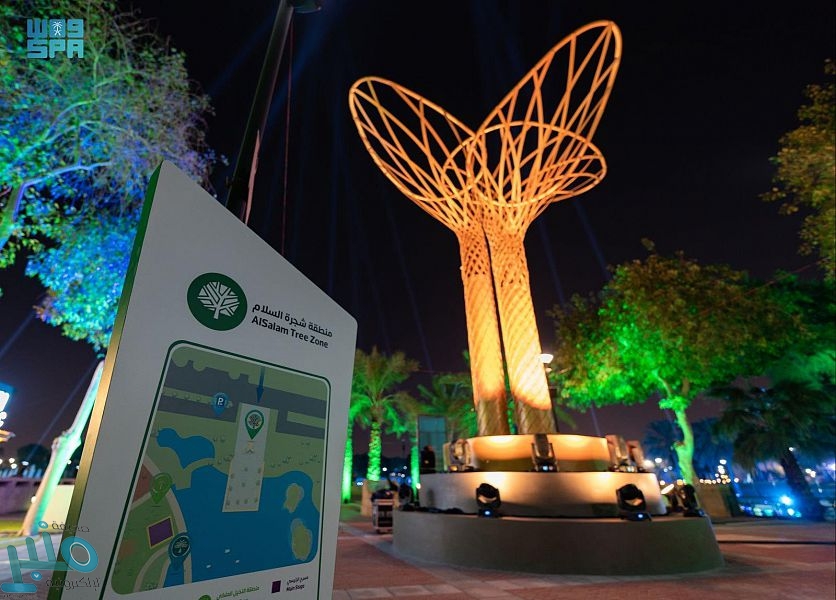 وتمثل شجرة السلام أيقونة المنطقة، وهي شجرة صناعية مضيئة شبيهة بالخيال، يبلغ ارتفاعها أكثر من 12م، وتنبعث منها إضاءات تزين المكان، إضافة إلى عروض بتقنية “إلـ إي دي” بالتزامن مع موسيقى تصويرية باعثة على الدهشة، وتستهدف جميع شرائح المجتمع من مختلف الفئات العمرية.