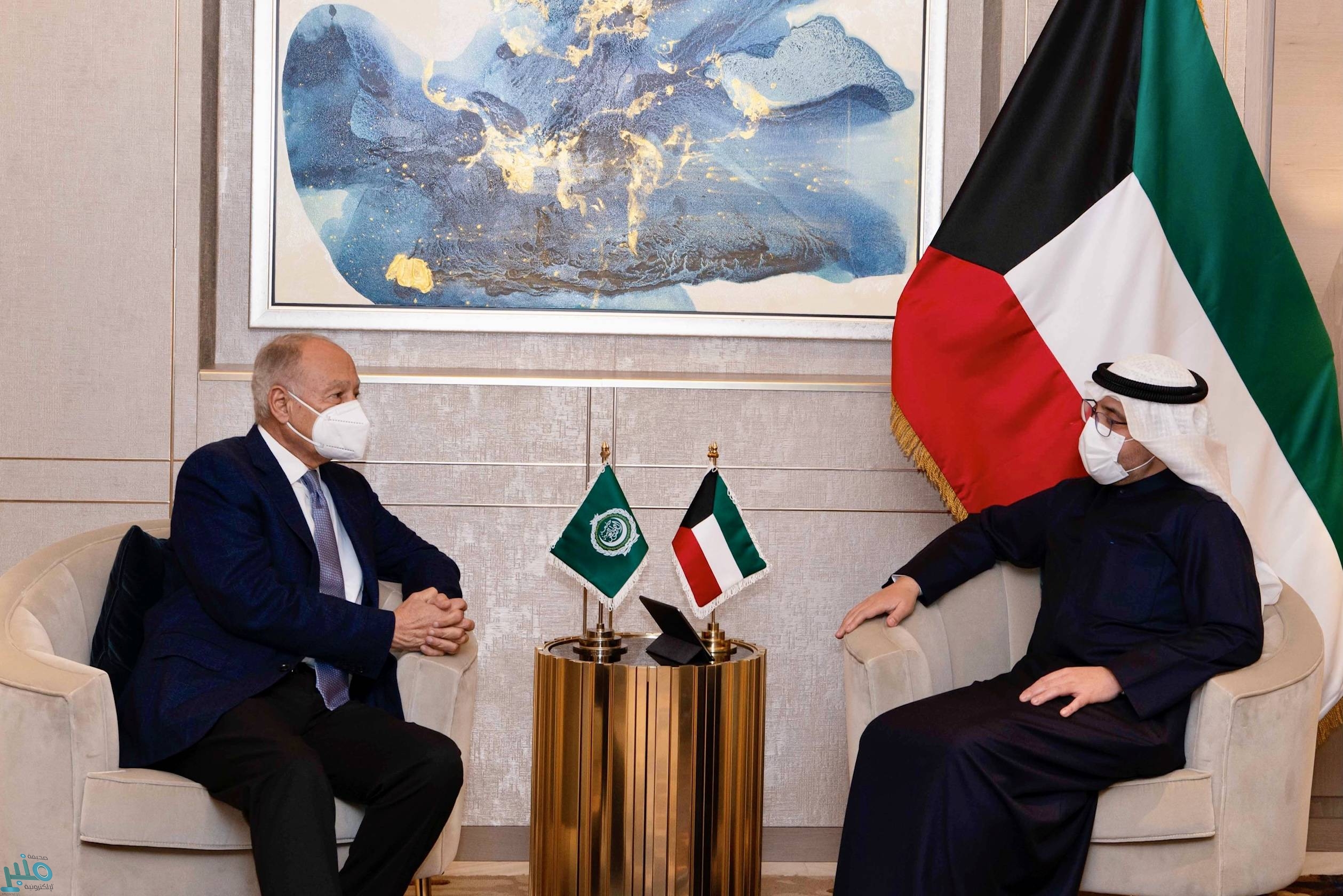 عقد وزير الخارجية ووزير الدولة لشؤون مجلس الوزراء الكويتي الشيخ الدكتور أحمد ناصر المحمد الصباح اليوم جلسة مباحثات مع الأمين العام لجامعة الدول العربية أحمد أبو الغيط، على هامش الاجتماع التشاوري لوزراء خارجية الدول العربية في دورته الـ 156، الذي تستضيفه الكويت غدًا.