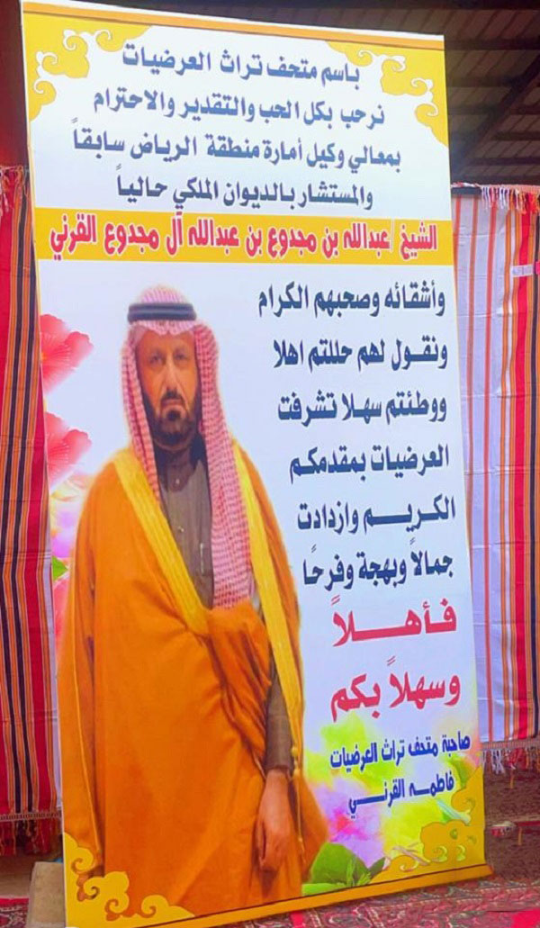 بعدها ارتجل معالي الشيخ عبدالله بن مجدوع كلمة هنأ فيها أهالي محافظة العرضيات بهذا المتحف الذي يضم مقتنيات كبيرة من تراث الآباء والأجداد، مقدمًا شكره للشاعرة فاطمة معيض القرني صاحبة المتحف على جهودها في إحياء هذا التراث، مقدمًا دعمًا ماديًا وقدره ثلاثون ألف ريال ودرع تذكاري، ووعد بدعمها مستقبلًا في توسعة المتحف، ثم توالت المشاركات لعدد من الشعراء يتقدمهم الشاعر سعد بن عزيز ومنيع القرني وعبدالله بن صعبان وأبو بكر الشمراني وأحمد القرني وعبدالله القرني.