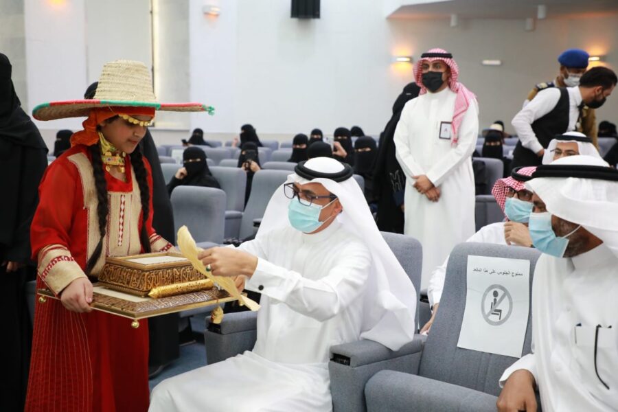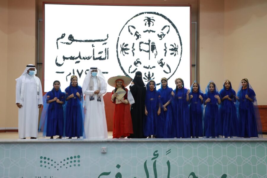 وشهد الحفل عروضًا من الطلاب والطالبات تحاكي الإرث التاريخي والحضاري لبلادنا، وتعبر عن التنوع الثقافي بالمنطقة وعدد من الوصلات الموسيقية الوطنية لعازفين من أبناء المنطقة.