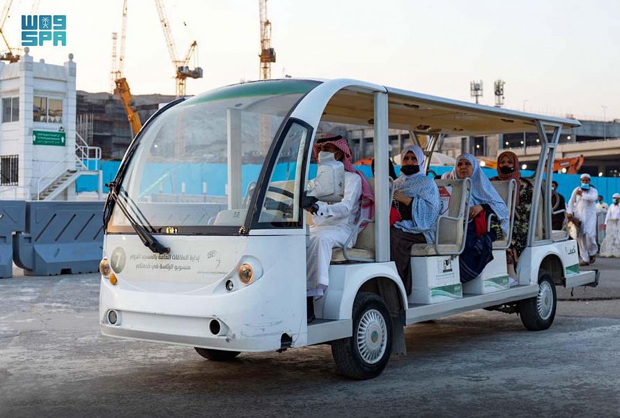 تقوم الرئاسة العامة لشؤون المسجد الحرام والمسجد النبوي بتقديم خدمة عربات القولف لنقل المعتمرين والمصلين من كبار السن والأشخاص ذوي الإعاقة في رحاب البيت العتيق.