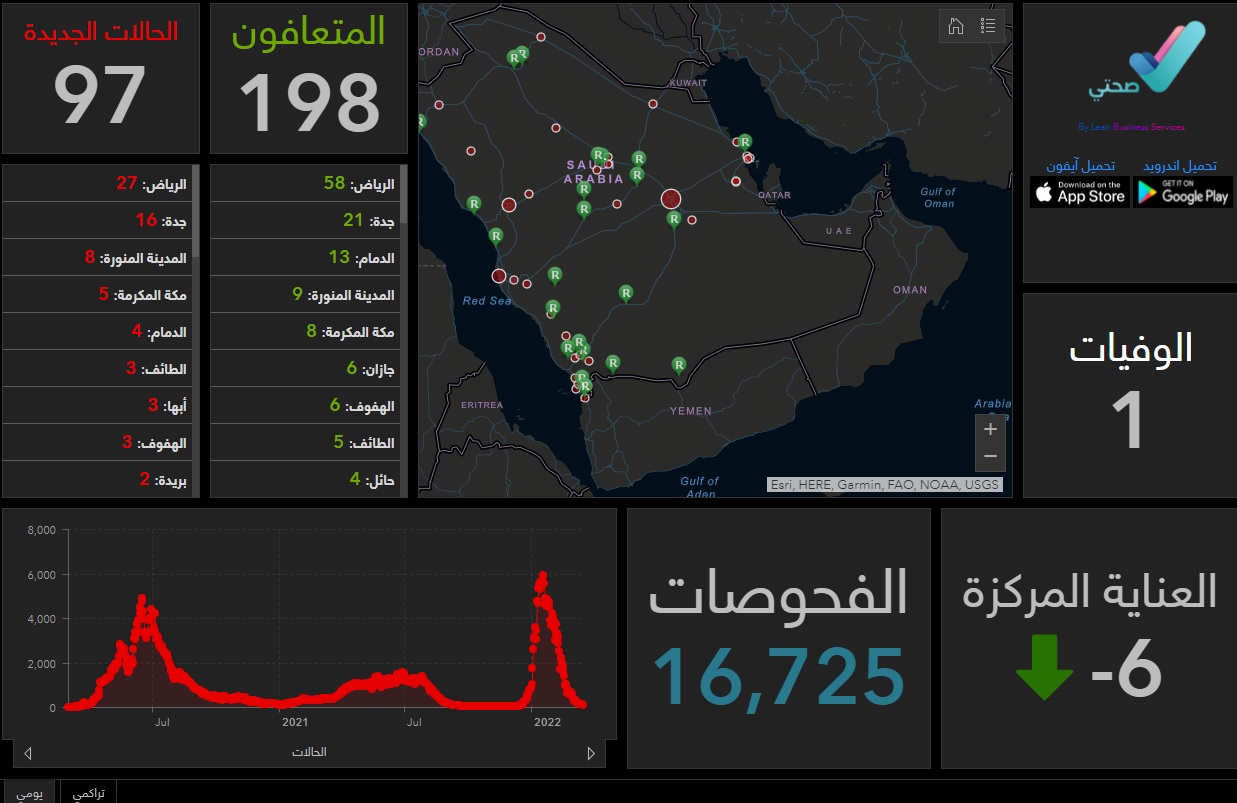 أما أعلى المدن تسجيلا لحالات التعافي فجاءت كما يلي: الرياض (58)، جدة (21)، الدمام (13)، المدينة (9)، مكة (8).