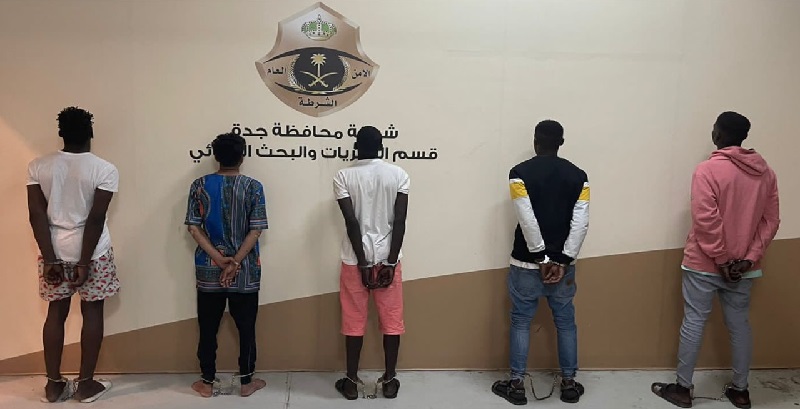 تمكنت شرطة محافظة جدة بمنطقة مكة المكرمة، من القبض على 5 أشخاص، بينهم مواطنان و3 مخالفين لنظام أمن الحدود من الجنسية التشادية.