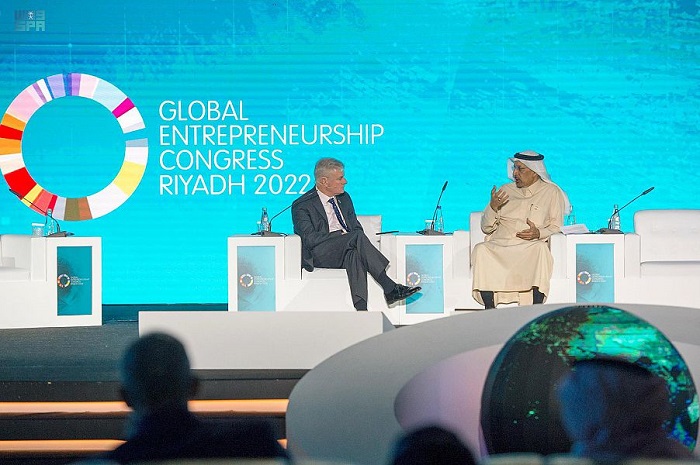وقال معاليه خلال مشاركته في جلسة حوارية ضمن فعاليات المؤتمر العالمي لريادة الأعمال (GEC)، الذي تنظمه الهيئة العامة للمنشآت الصغيرة والمتوسطة “منشآت” بالتعاون مع الشبكة العالمية لريادة الأعمال (GEN): “إن الاستثمار في المملكة سابقًا معتمد بشكل كبير على الغاز والنفط وهذه فرصة كبيرة في التفكير في زيادة الفرص الاستثمارية وتنميتها وتطويرها وتنوعها لتكون جميع المجالات متاحة في جميع القطاعات والبحث عن التنوع والابتكار من خلال المقترحات المقدمة لبلوغ الهدف ونمو الاستثمار”، مبينًا أن المملكة لديها جميع المكونات الأساسية للاستثمار وتعد أرض خصبة للمستثمرين والشركات على مستوى دول العالم.