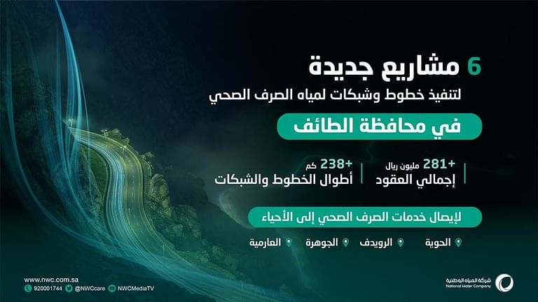 يشار إلى أن هذه المشاريع تأتي تنفيذًا لخطط شركة المياه الوطنية الهادفة لتحقيق مستهدفات الاستراتيجية الوطنية للمياه، ورفع كفاءة الخدمات المائية والبيئية في الطائف، وتطويرها وفق أعلى المعايير، تحقيقًا لرؤية المملكة 2030، وتحسين الخدمات المقدمة للعملاء.