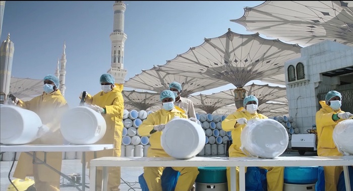 360 فرداً يشرفون على توزيع سقيا زمزم لأكثر من نصف مليون صائم يومياً في المسجد النبوي