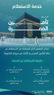 آخر الأخبار > “الضمان الصحي” يوضح خطوات الاستعلام عن تأمين العمرة للقادمين من خارج المملكة