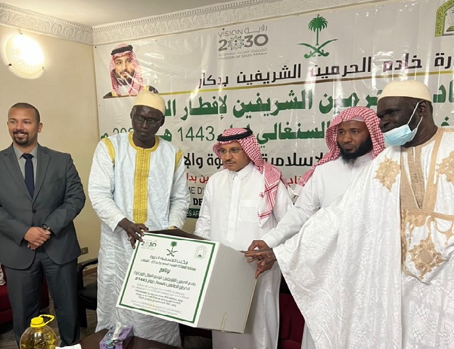 دشّنت وزارة الشؤون الإسلامية والدعوة والإرشاد ممثلة بالملحقية الدينية بسفارة المملكة لدى السنغال،اليوم، برنامجي خادم الحرمين الشريفين لتفطير الصائمين وتوزيع التمور لعام 1443، وذلك بمقر الملحقية بداكار، بحضور سفير خادم الحرمين الشريفين لدى جمهورية السنغال سعد بن عبد الله النفيعي.