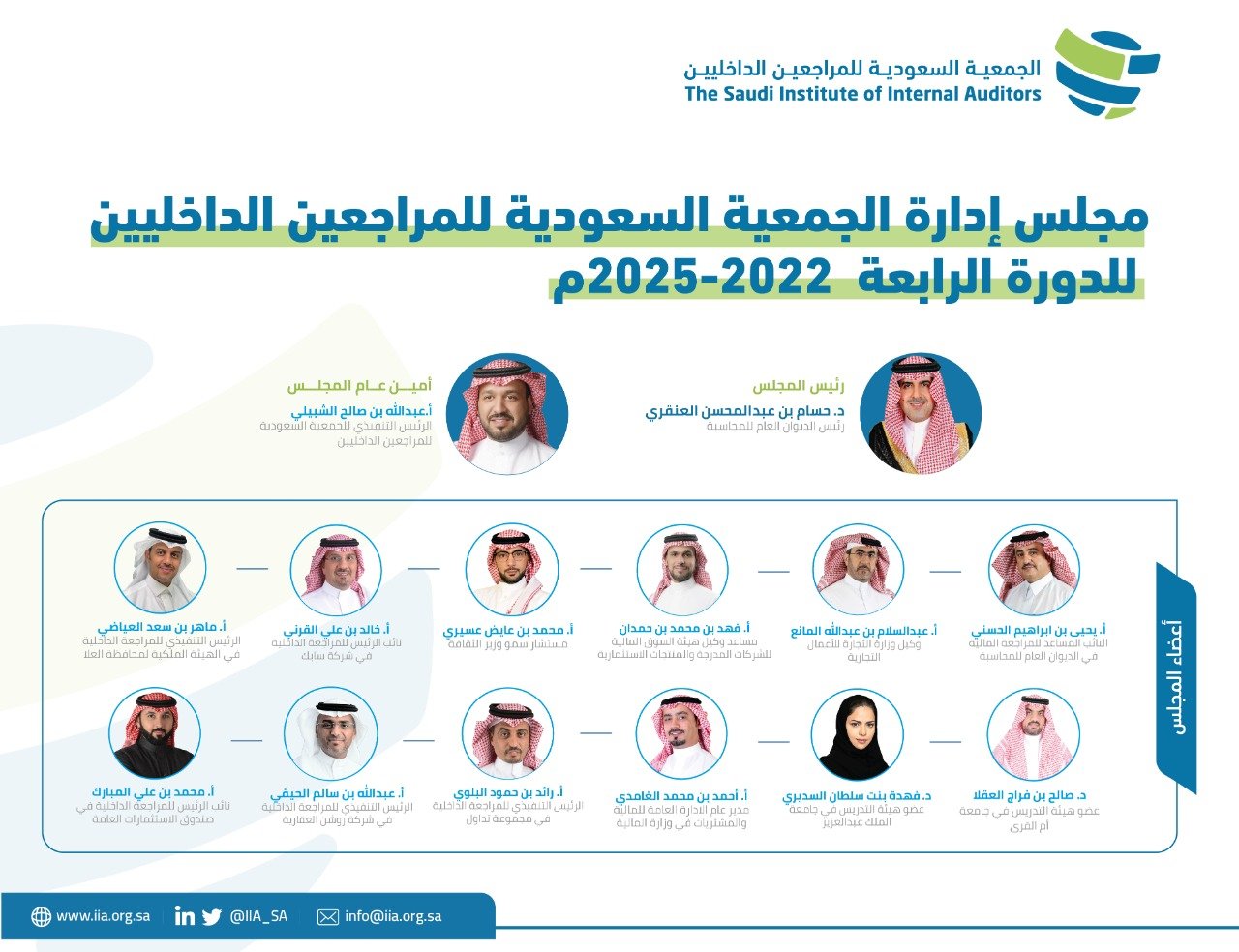 ويضم مجلس إدارة الجمعية الجديد نخبة من الخبرات الوطنية المميزة في مجالات الإدارة والمراجعة الداخلية والمنظومة الرقابية بشكل عام، ويتكون المجلس من اثني عشر عضواً، برئاسة معالي الدكتور حسام العنقري، وعضوية ستة ممثلين لجهات حكومية، كما يضم المجلس ستة أعضاء منتخبين من قبل الجمعية العمومية للجميعة السعودية للمراجعين الداخليين.