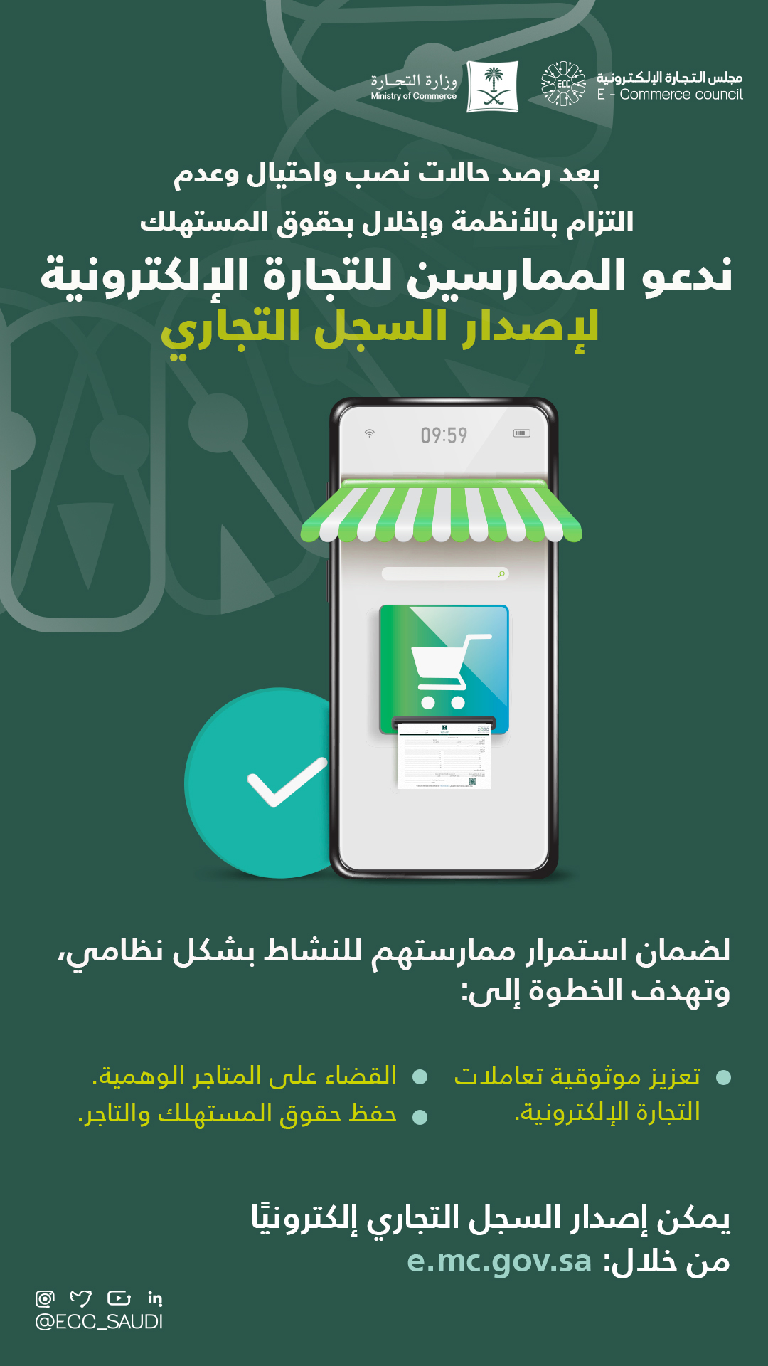 وأكد المجلس أن الهدف من هذه الخطوة هو تعزيز موثوقية تعاملات التجارة الإلكترونية، وحفظ حقوق المستهلك والتاجر، والقضاء على المتاجر الوهمية خصوصَا بعد رصد وزارة التجارة مؤخرًا لحالات عدم التزام وإخلال بحقوق المستهلك وعمليات نصب وتحايل من بعض المتاجر التي يديرها ممارسون “لا يملكون سجلات تجارية”.
