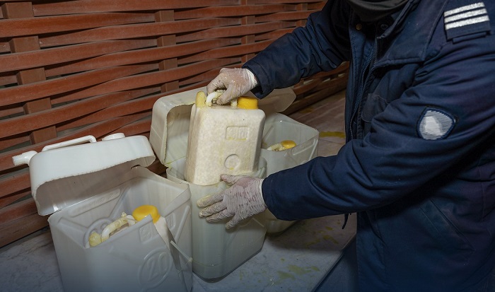 وأوضحت الهيئة أنه أثناء اتخاذ الإجراءات الجمركية لركاب إحدى الحافلات القادمة إلى المملكة عبر منفذ الحديثة، عُثر على 141،831 حبة كبتاجون في أمتعة راكبَين، وذلك بوضع الحبوب داخل جالونات بلاستيكية، تحتوي على زيت زيتون، حيث جرى إخفاء الحبوب بطريقة فنية داخل الجالونات.