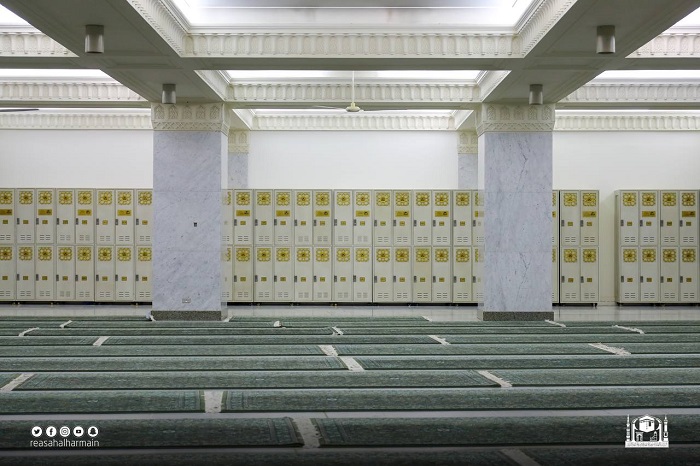 وأضاف فضيلته أنه تم تخصيص خزانة لكل معتكف، كما خصص للخزانات مكان في قبو توسعة الملك فهد عن يمين الداخل وعن يساره، مبينا أن هناك مواقع خاصة للرجال وأخرى خاصة بالنساء، وأشار الفريح أن وكالة الرئاسة للشؤون التوجيهية والإرشادية خصصت باب الملك فهد (73) المؤدي إلى القبو لدخول أغراض المعتكفين، منوهاً أن الرئاسة العامة لشؤون المسجد الحرام والمسجد النبوي تُخلي مسؤوليتها في حال فقدان أغراض المعتكفين .