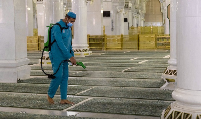 جندت الرئاسة العامة لشؤون المسجد الحرام والمسجد النبوي، أكثر من (70) فرقة عمل لتعقيم المسجد الحرام، حيث يتجاوز عددهم (700) عامل وأكثر من (100) مشرف, يعملون على مدار الساعة في تعقيم كافة جنبات المسجد الحرام وساحاته الخارجية ودورات المياه, أوضح ذلك وكيل المسجد الحرام للشؤون التنفيذية والتطويرية ووكيل الرئيس العام للخدمات والشؤون الميدانية وتحقيق الوقاية البيئية الأستاذ محمد بن مصلح الجابري.