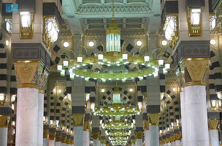 إضاءات المسجد النبوي دُرر فريدة تهيئ للمصلين أسباب الراحة والطمأنينة