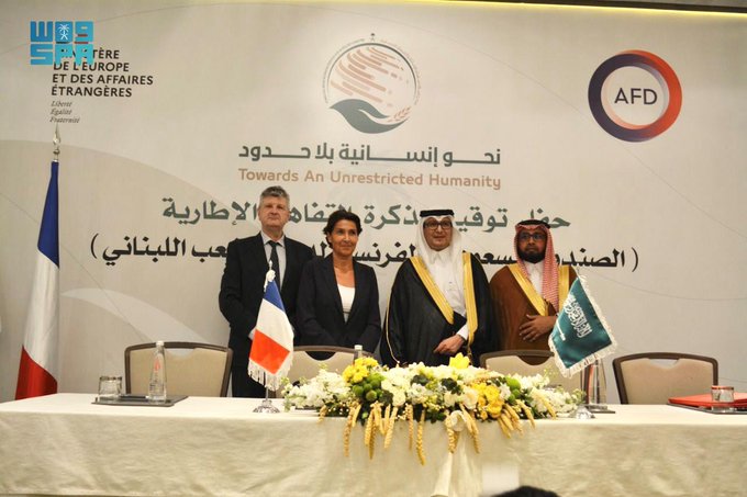وقّع مركز الملك سلمان للإغاثة والأعمال الإنسانية في العاصمة اللبنانية بيروت اليوم مذكرة تفاهم مع وزارة الخارجية الفرنسية، والوكالة الفرنسية للتنمية ( AFD ) ، بهدف دعم العمل الإنساني في لبنان ، في إطار الشراكة السعودية الفرنسية .