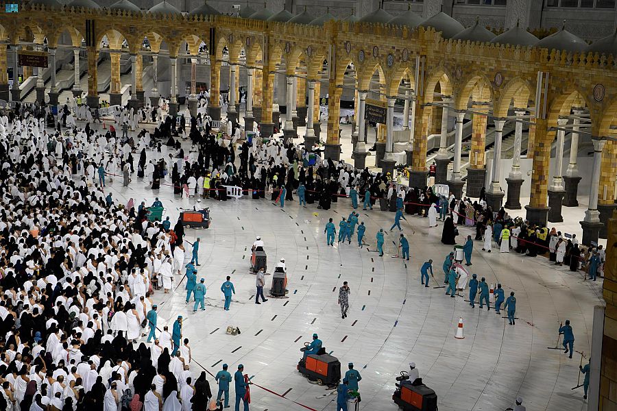 وأفاد “الجابري” أن أرضيات ساحات المسجد الحرام تُطهر باستخدام مواد خاصة بالمسجد الحرام، ويقوم العمالة برش معطرات بروائح زكية جلبت خصيصا للمسجد الحرام.