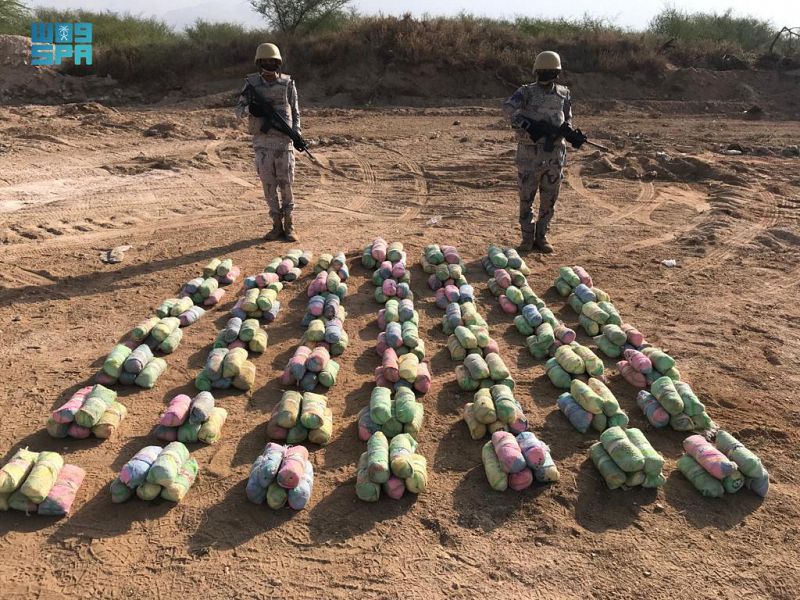 صرح المتحدث الرسمي للمديرية العامة لحرس الحدود العقيد مسفر القريني، بأن المتابعة الأمنية لمحاولات تهريب المخدرات إلى المملكة، أسفرت عن تمكن الدوريات البرية في مناطق جازان ونجران وعسير من إحباط محاولات تهريب (760) كيلو جراماً من مادة الحشيش المخدر، و(45) طناً و(624) كيلو جراماً من نبات القات المخدر، والقبض على المتورطين في تهريبها وعددهم (61) متهماً، منهم (41) مواطناً و(20) مخالفاً لنظام أمن الحدود: (11) من الجنسية الإثيوبية و(7) من الجنسية اليمنية و(2) من الجنسية الباكستانية، وجرى إيقافهم واتخاذ الإجراءات النظامية الأولية بحقهم، وتسليمهم والمضبوطات لجهة الاختصاص.