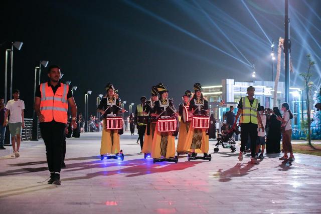 كما لفت أنظار الجمهور المسرح المائي، والمسيرات الاستعراضية المتحركة التي تقدم فقراتها على امتداد ساحات المنطقة؛ حيث حظيت هذه العروض الحية باهتمام كبير من مختلف الفئات العمربة للاستمتاع بالفقرات المقدمة؛ والإصطفاف حولها لتصويرها والتفاعل معها وسط مشاركة الأطفال حالة السعادة والفرح التي يعيشونها مع كل عرض.