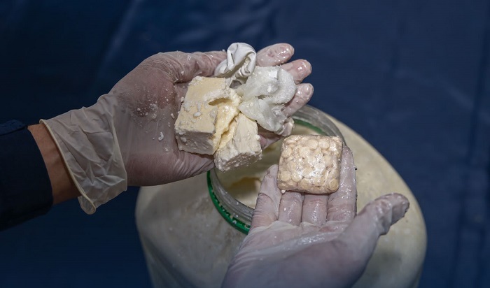 وأوضحت الهيئة أنه أثناء إجراء عملية الكشف والمعاينة لإحدى المركبات القادمة من نوع “خصوصي”، عُثر على 29,000 حبة كبتاجون، كانت مُخبأة بطريقة فنية، وذلك بإخفاء الحبوب في قفازات بلاستيكية ووضعها داخل عُلب زجاجية تحتوي على أجبان، ومن ثم وضعها ضمن الأمتعة التي يحملها المُهرب في المركبة.