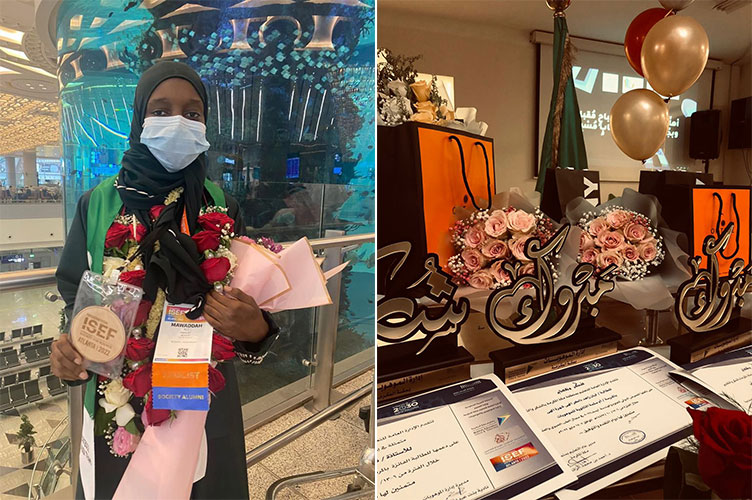 بعد ذلك توالت فقرات الحفل متضمنة فيديو مرئي يستعرض منجزات معرض آيسف ٢٠٢٢ ، ومسيرة للمكرمات، كما جرى تكريم مودة عمر، والطالبات المشاركات في الأولمبياد الوطني للإبداع.