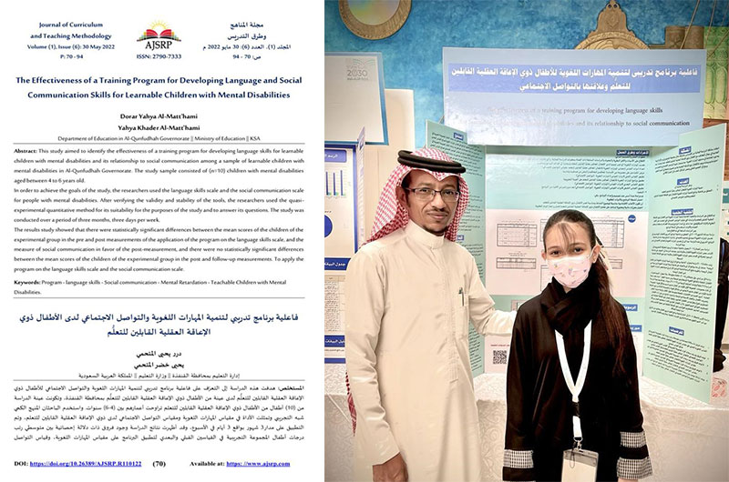 تمكنت الطالبة “درر يحيى المتحمي” في الصف الثاني متوسط بمدرسة الصالحي بتعليم القنفذة من نشر مشروعها البحثي ( فاعلية برنامج تدريبي لتنمية المهارات اللغوية والتواصل الاجتماعي للأطفال ذوي الإعاقة العقلية القابلين للتعلم) في المجلة العربية للعلوم ونشر الأبحاث هذا الشهر، كأحد الأبحاث العلمية المحكمة، بمشاركة والدها مشرف الموهوبين يحيى خضر المتحمي الذي عمل معها كمشرف أكاديمي، وقد اشتملت الدراسة على تطبيق مقياسين تم إعدادهما وتطبيق الدراسة بالتعاون مع مركز الوفاء للرعاية النهارية بالقنفذة.