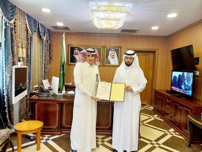 كرم محافظ محايل علي بن إبراهيم الفلقي اليوم في مكتبه، المهندس هادي إسحاق الرافعي، رئيس قسم العمليات والصيانة بكهرباء محايل.