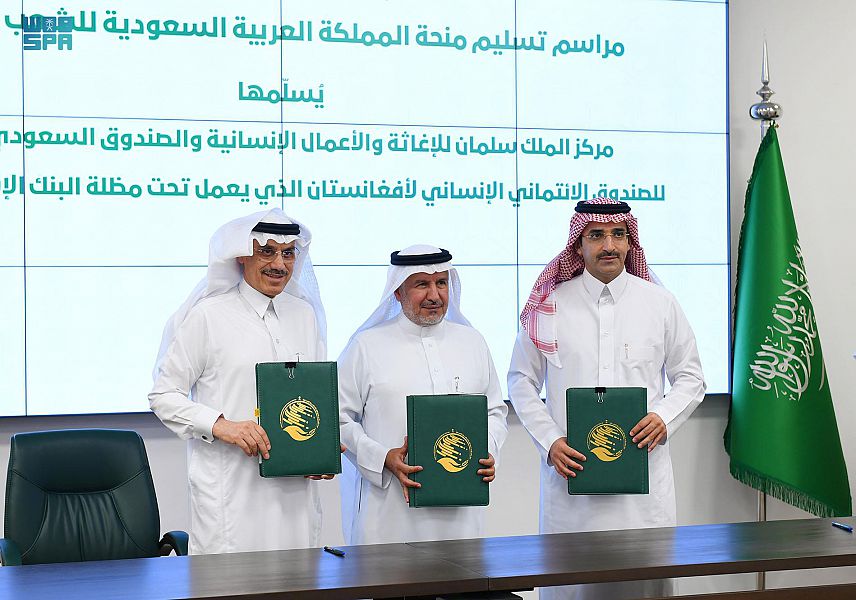 وجرى التوقيع على تقديم هذه المنحة , بمقر مركز الملك سلمان للإغاثة والأعمال الإنسانية بالرياض اليوم، بحضور كل من: معالي المستشار بالديوان الملكي المشرف العام على مركز الملك سلمان للإغاثة والأعمال الإنسانية الدكتور عبدالله بن عبدالعزيز الربيعة، ومعالي رئيس البنك الإسلامي للتنمية الدكتور محمد الجاسر، والرئيس التنفيذي للصندوق السعودي للتنمية سلطان بن عبدالرحمن المرشد، ومندوب المملكة الدائم لدى منظمة التعاون الإسلامي الدكتور صالح بن حمد السحيباني، والمبعوث الخاص للأمين العام لمنظمة التعاون الاسلامي لأفغانستان السفير طارق علي بخيت، ورئيس الصندوق الائتماني التابع للبنك الإسلامي للتنمية المهندس محمد الساعاتي.