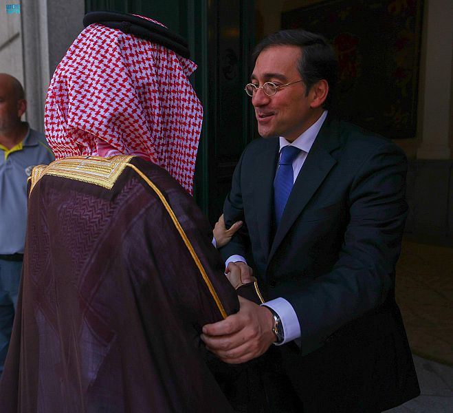 التقى صاحب السمو الأمير فيصل بن فرحان بن عبدالله وزير الخارجية، اليوم، معالي وزير خارجية مملكة إسبانيا خوسيه مانويل ألباريس، وذلك في قصر فيانا بالعاصمة الإسبانية مدريد.