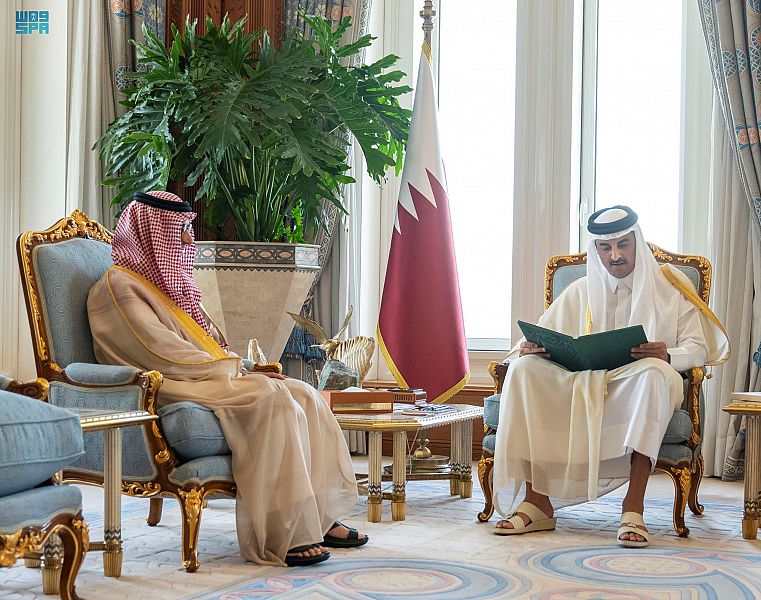 بعث خادم الحرمين الشريفين الملك سلمان بن عبدالعزيز آل سعود – حفظه الله -، رسالة خطية إلى أخيه صاحب السمو الشيخ تميم بن حمد آل ثاني أمير دولة قطر، تتعلق بتعزيز العلاقات الأخوية بين البلدين الشقيقين.