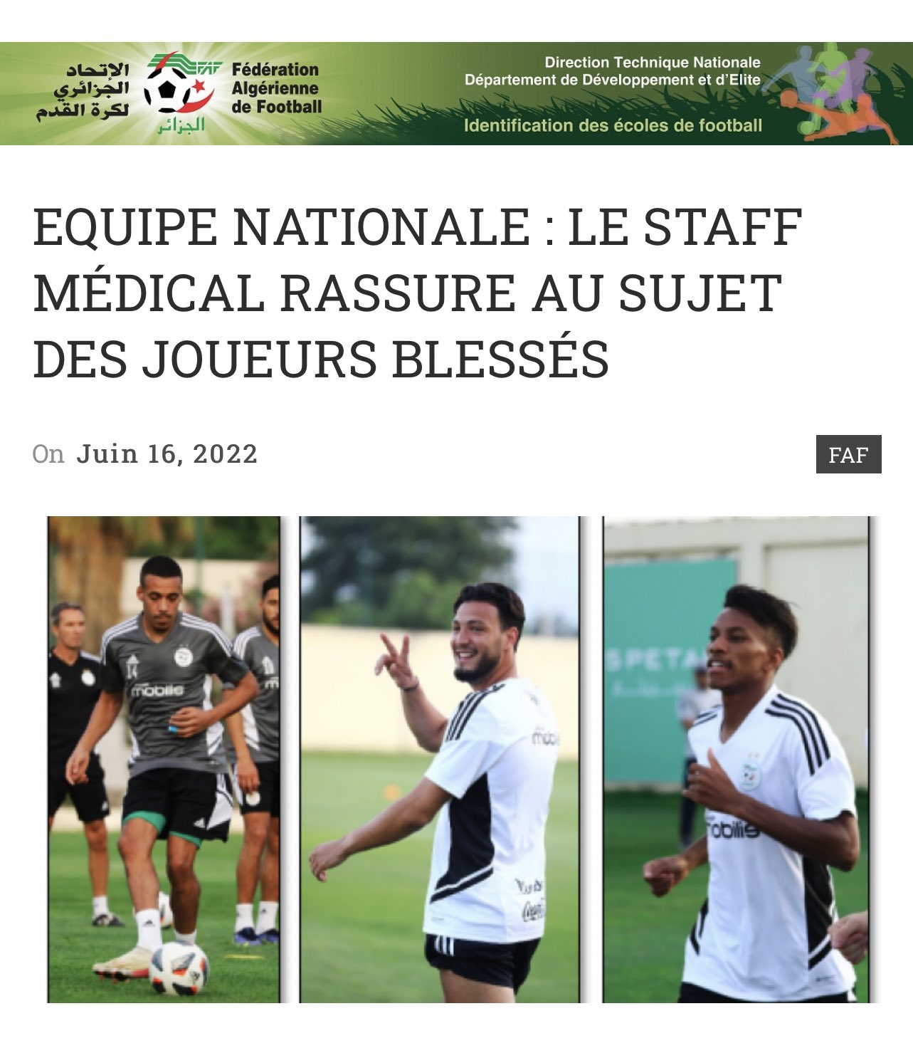 ونشر الإعلامي الرياضي، أحمد العجلان، تغريدة عبر حسابها الشخصي على مواقع التواصل الاجتماعي تويتر قائلاً : “رسميا من موقع الاتحاد الجزائري اصابة سفيان بن دبكة لاعب الفتح بتمزق في العضلة الأمامية”.