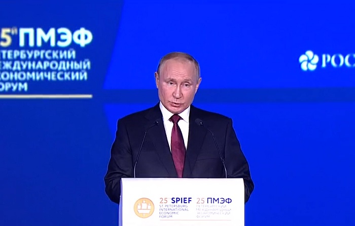 ألقى الرئيس الروسي، فلاديمير بوتين، كلمة خلال مشاركته في الجلسة العامة لمنتدى بطرسبورغ الاقتصادي الدولي الخامس والعشرين SPIEF 2022، اليوم الجمعة، 17 يونيو.