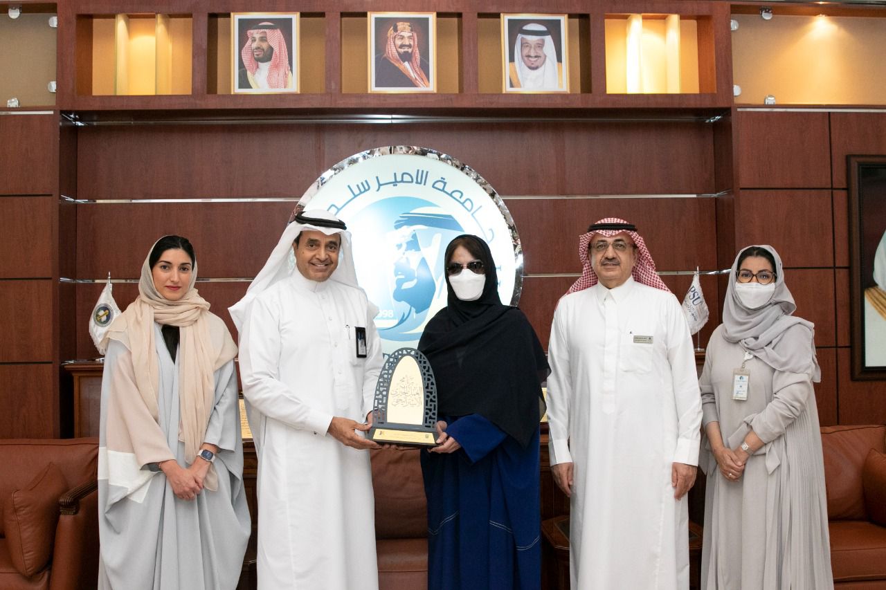 واستقبل الدكتور أحمد بن صالح اليماني، رئيس الجامعة ونوابه الوفد الممثل لجمعية ألزهايمر، وعلى رأسهم سمو الأميرة مضاوي بنت محمد بن عبدالله آل سعود، رئيس مجلس إدارة الجمعية ورئيس اللجنة التنفيذية، و لدكتور عبدالعزيز الشامخ المشرف المالي للجمعية ورنا المرعي المدير التنفيذي للجمعية وبحضور الجهة الداعمة ممثلًا في (شركة الجفالي) لولوة بنت خالد الجفالي.