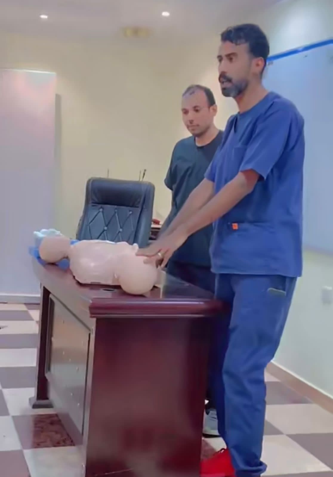 وقدم الدورة الممرض والمدرب المعتمد من جمعية لازم «حسن حويس القوزي» والمسعف «عبدالله علي الشيخي»، وذلك للتعريف بالبرامج التوعوية والوقائية، ومعرفة أهم المهارات الأساسية في الإسعافات الأولية، واستفاد منها أكثر من 40 شخصًا من مختلف الجاليات.