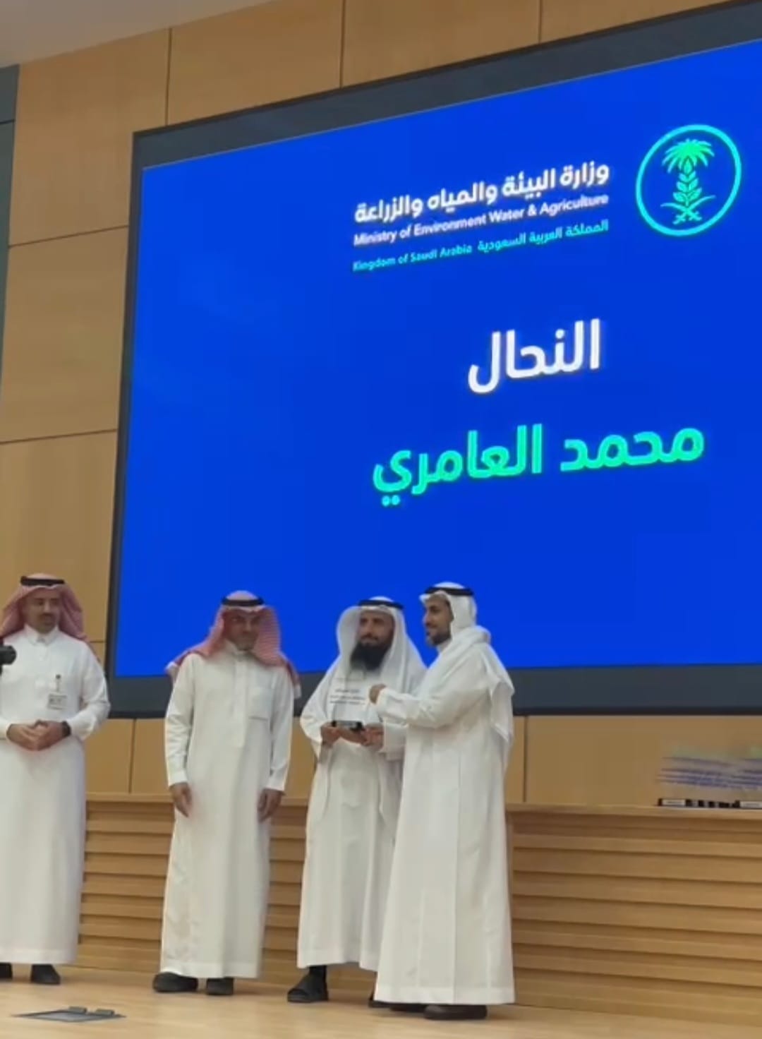 كرّم معالي نائب وزير البيئة والمياه والزراعة المهندس منصور بن هلال المشيطي النحال محمد بن خلوفه العامري في مقر الوزارة بالرياض اليوم؛ وذلك بعد فوزه بميداليتين في مسابقة (لندن هني هارودز 2022م) لأجود أنواع العسل.