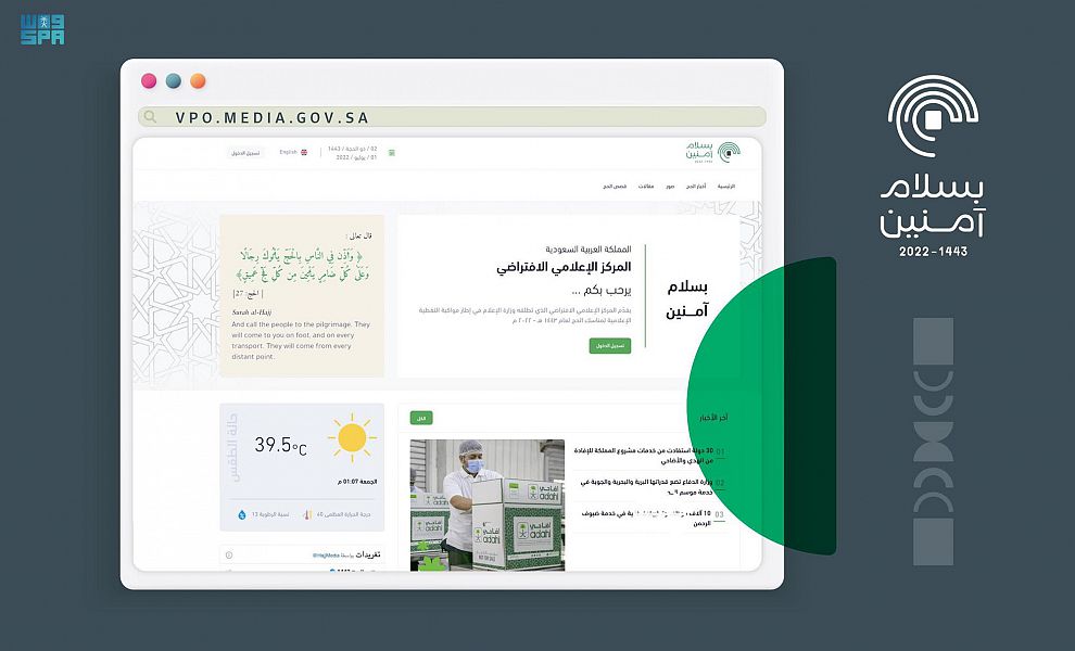وكانتْ غرفةُ العمليات الإعلامية قد أطلقَتْ أعمالَ المركز بتطوير هوية الحج ” بسلام آمنين ” بشكل يعكسُ اهتمامَ المملكة بسلامة الحجاج وأمنهم، فيما أعدت دليلًا إرشاديًّا يتضمنُ المعلوماتِ الخاصةَ باستخدام الهوية التي تُمَكِّنُ جميعَ الأجهزة والجهاتِ الاستفادة منها عبر الرابط التالي https://vpo.media.gov.sa/Home/Index .