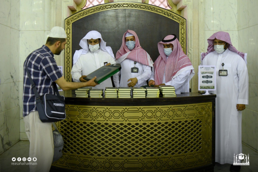قامت وكالة الشؤون التوجيهية والإرشادية بالرئاسة العامة لشؤون المسجد الحرام والمسجد النبوي ممثلةً في الإدارة العامة لشؤون المصاحف والكتب بتوزيع مصحف لكل حاج وذلك ضِمن برنامج “حملة معتمرينا شرف لمنسوبينا في موسمها العاشر “.