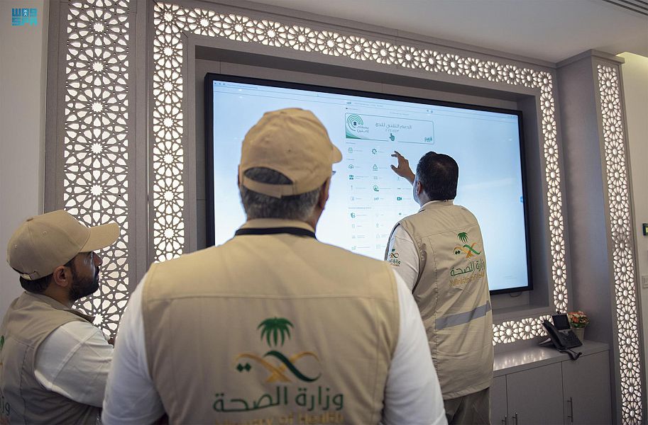 وطُبِّقَ نظامٌ طبيٌّ إلكترونيٌّ في مستشفيات ومراكز المشاعر المقدسة يُوَثِّقُ بياناتِ الحجاج بالتكامل مع وزارة الحج والمركز الوطني للمعلومات عند تسجيل الحاج في أي مرفق صحي بالمشاعر، كما يتم في غرفة القيادة والتحكم تتبع آلي لأكثر من 260 مركبةَ نقل إسعافي بمكة المكرمة ومنطقة المشاعر والمدينة المنورة، يمكنُ توجيهُها بشكل فردي أو على مجموعات آلياً إلى موقع الحدث وحسب الاحتياج، ومتابعة قافلة نقل الحجيج المنومين من مستشفيات المدينة المنورة إلى مستشفيات عرفات، وبين مستشفيات منى وعرفات.