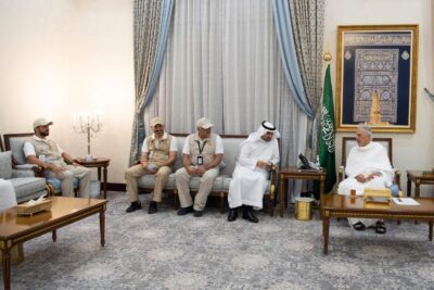 استقبل مستشار خادم الحرمين الشريفين أمير منطقة مكة المكرمة رئيس لجنة الحج المركزية، صاحب السمو الملكي الأمير خالد الفيصل في مقر الإمارة بمشعر منى وزير الصحة فهد بن عبدالرحمن الجلاجل.