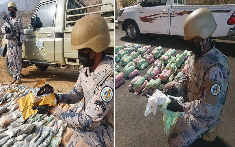 صرّح المتحدث الرسمي للمديرية العامة لحرس الحدود، العقيد مسفر القريني، بأن الدوريات البرية لحرس الحدود بمناطق جازان ونجران وعسير وتبوك، أحبطت محاولات تهريب (13) طنًا و(296) كيلوجرامًا من مادة القات المخدر، و(230) كيلوجرامًا من مادة الحشيش المخدر، و(334,000) قرص من مادة الإمفيتامين المخدر، و(278) جرامًا من مادة الأفيون المخدر، و(1.8) جرام من مادة الكوكائين المخدر، وقبضت على مهربيها، وعددهم (30) متهمًا، منهم (16) مواطنًا، و(14) مخالفًا لنظام أمن الحدود، وهم: (11) من الجنسية الإثيوبية، و(3) من الجنسيات الصومالية والإرترية والمصرية، واستُكمِلت الإجراءات النظامية الأولية بحقهم، وتسليمهم والمهربات لجهة الاختصاص.