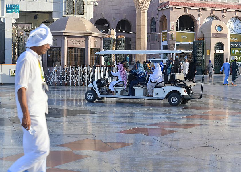 هيأت وكالة الرئاسة العامة لشؤون المسجد النبوي خدمة التنقّل بالعربات الكهربائية بهدف مساعدة كبار السن الوصول إلى أبواب المسجد النبوي ومرافقه بيسر وسهولة.