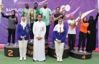 من جانب آخر تنطلق غداً السبت الدورة النسائية لحكمات ومنظمات منافسات التايكوندو بصالة الأمير سعود بن جلوي بالراكة وتستمر لمدة (5) أيام يخضعن المتدربات لأبراز قوانين تحكيم وتنظيم المنافسات رغبةً من الإتحاد بزيادة أعداد الحكمات لتمكينهن من إدارة المنافسات النسائية يحاضر في الدورة رئيس لجنة الحكام الدولي فايز السلولي ونائبه الدولي مجاشع علوي.