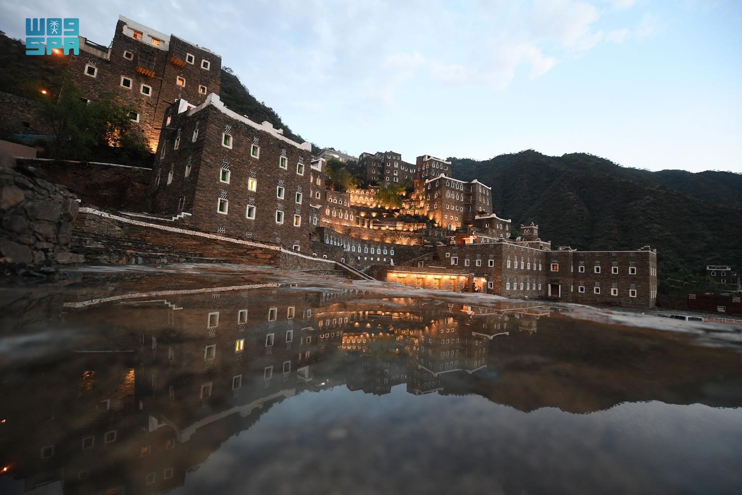 وتحتوي قرية رجال ألمع على نماذج فريدة من القصور المبنية بالحجارة، يرتفع بعضها لعلوٍ يصل إلى ثمانية أدوار، وفيها القصر التراثي لذي جُهز ليكون متحفاً للحفاظ على تُراث القرية العريق. ويمكن التمتع بمشاهدتها من خلال النزول عبر “التلفريك” من السودة إلى رجال ألمع ثم الانتقال بالباص السياحي إلى مقر القرية، وتناول أشهى الأطباق في مطاعمها ذات الإطلالة الخلابة، على وديان عسير الخضراء.