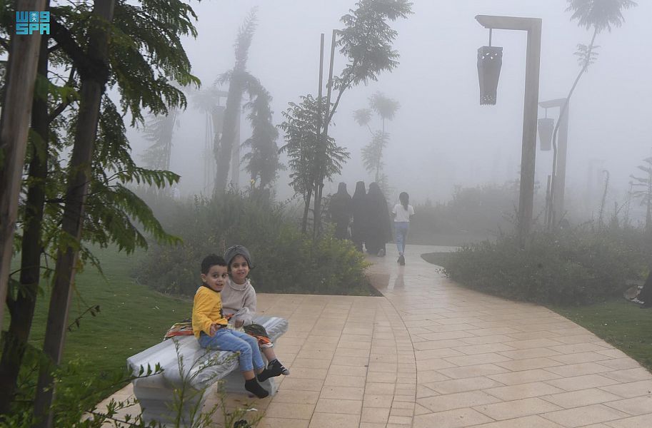 وأظهرت عدسة “واس” استمتاع الزائرين القادمين للمنطقة من معظم مدن المملكة ودول الخليج العربية، بالأجواء المعتدلة التي تشهدها منطقة عسير، حيث تتخللها الأمطار المتفرقة والضباب الكثيف الذي غطى معظم مواقع التنزه مثل متنزه السحاب وحديقة وممشى الضباب بأبها الذي يقع على تل مرتفع يطل على وادي ضلع، مما يشكل بعداً جمالياً أخآذاً.