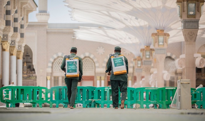 كما كثفت وكالة المسجد النبوي برامج التطهير والتعقيم للمسجد النبوي وساحاته ومرافقه على مدار الساعة، وتهيئة المسجد النبوي بالسجاد الفاخر وتعطيره والعناية به بعد كل صلاة، بالإضافة لتبخير وتطييب المسجد النبوي وزائريه بأجود أنواع الطيب والبخور.
